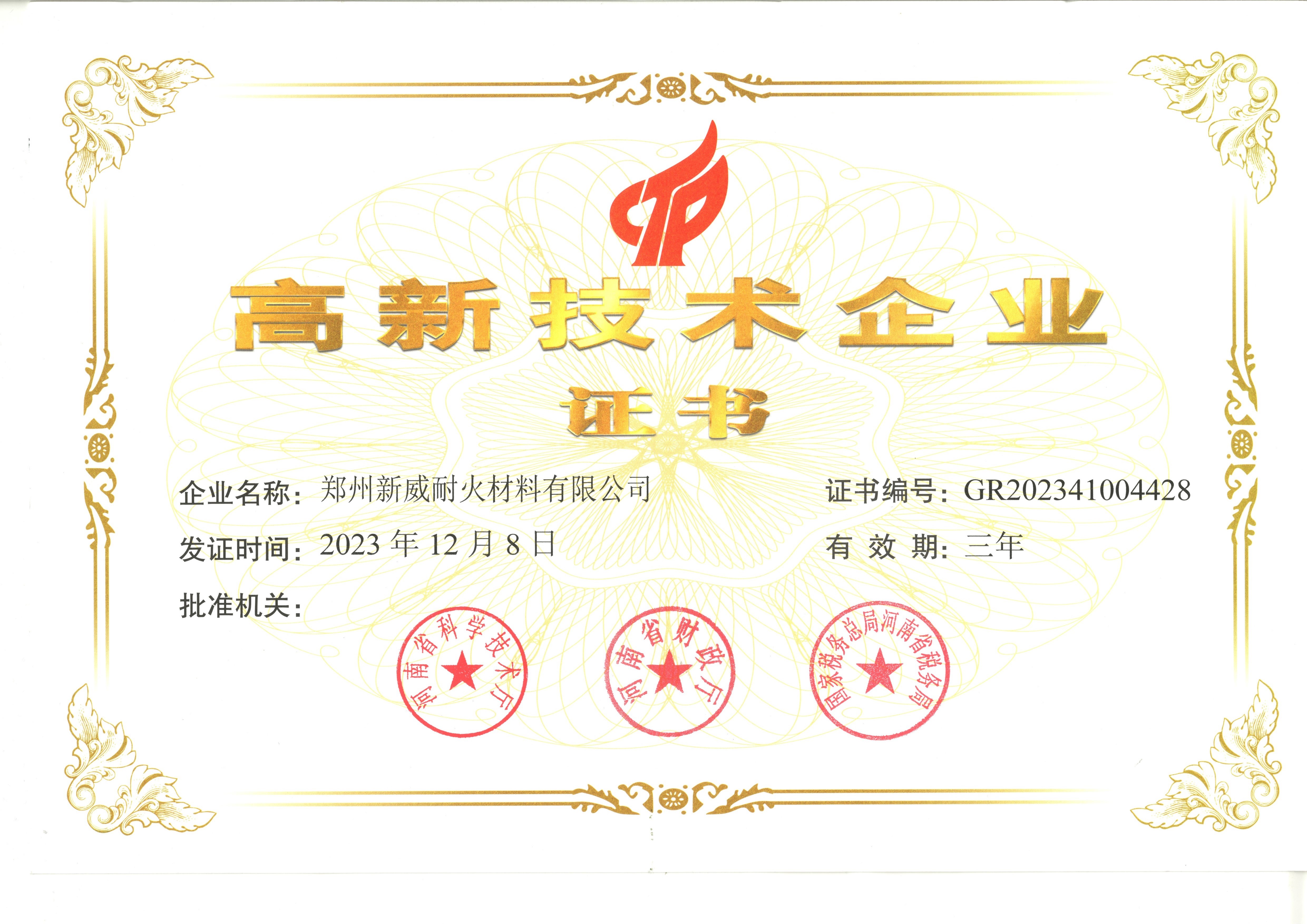 高新技術(shù)企業(yè)證書